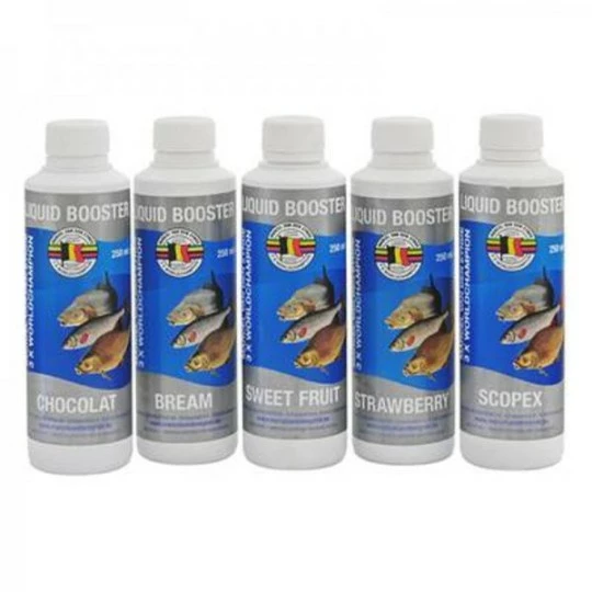 De naam liquid booster zegt het allemaal, en versterkt je aas met smaak en geur. We hebben verschillende ingrediënten gebruikt om een smakelijk product te maken dat voor elke vis onweerstaanbaar is, dat kan worden gebruikt voor grondvoer, pellets en particles/zadenmengelingen.
