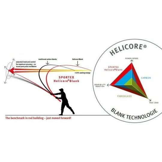 De Xclusive Feeder NT is gebouwd op een Helicore blank van T800 carbon. Het materiaal waar deze blank van gemaakt is heeft zich al ruimschoots bewezen in de spin- en karperhengels. De actie is snel en het herstelvermogen van deze lichte blank is enorm. Dit houdt in dat er ver en precies mee geworpen kan worden en dat deze enorme krachtreserve heeft om de vis te kunnen drillen.