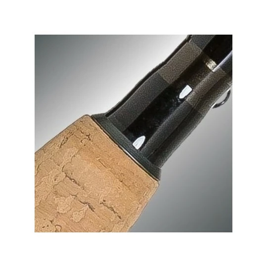 De hengel is fraai afgewerkt met een natuur kurken handgreep, Fuji molenhouden en 14 – 16 SIC geleideogen.